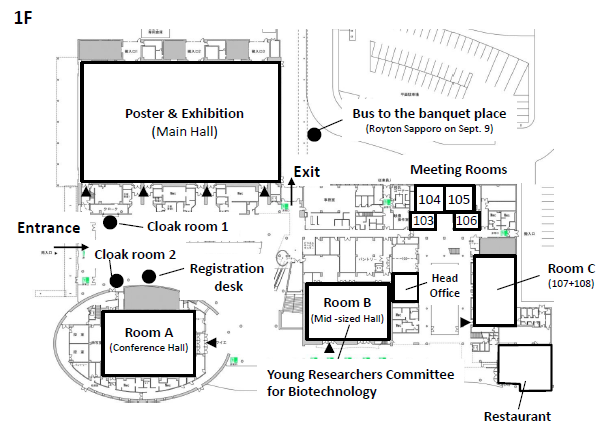 | Symposia | 1F: Room B (Mid-sized Hall), Room C (107+108) 2F: Room D (Small Hall), Room E (204) |
